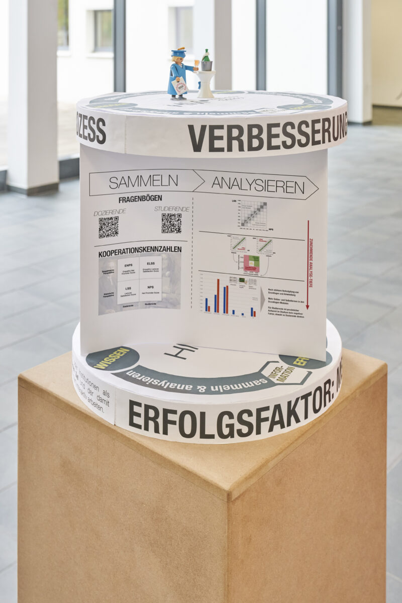 Kooperation setzt voraus, dass alle Beteiligten ihre Ziele und Erwartungen offenlegen. Mit dem neuen Evaluationssystem erkennen Lehrende, wie Studierende Lehrveranstaltungen erleben – und umgekehrt. Nur was messbar ist, lässt sich verbessern. Deshalb wurden vier Kennzahlen entwickelt, die in einer dreistufigen Methodik die Qualität der Zusammenarbeit erfassen: Zuerst werden Studiengänge oder Lehrveranstaltungen mit gering ausgeprägter Kooperation identifiziert. Im zweiten Schritt wird geprüft, ob die Ursachen eher bei den Lehrenden oder bei den Studierenden liegen. In der dritten Stufe werden Ursachen analysiert, um gezielt Maßnahmen abzuleiten.